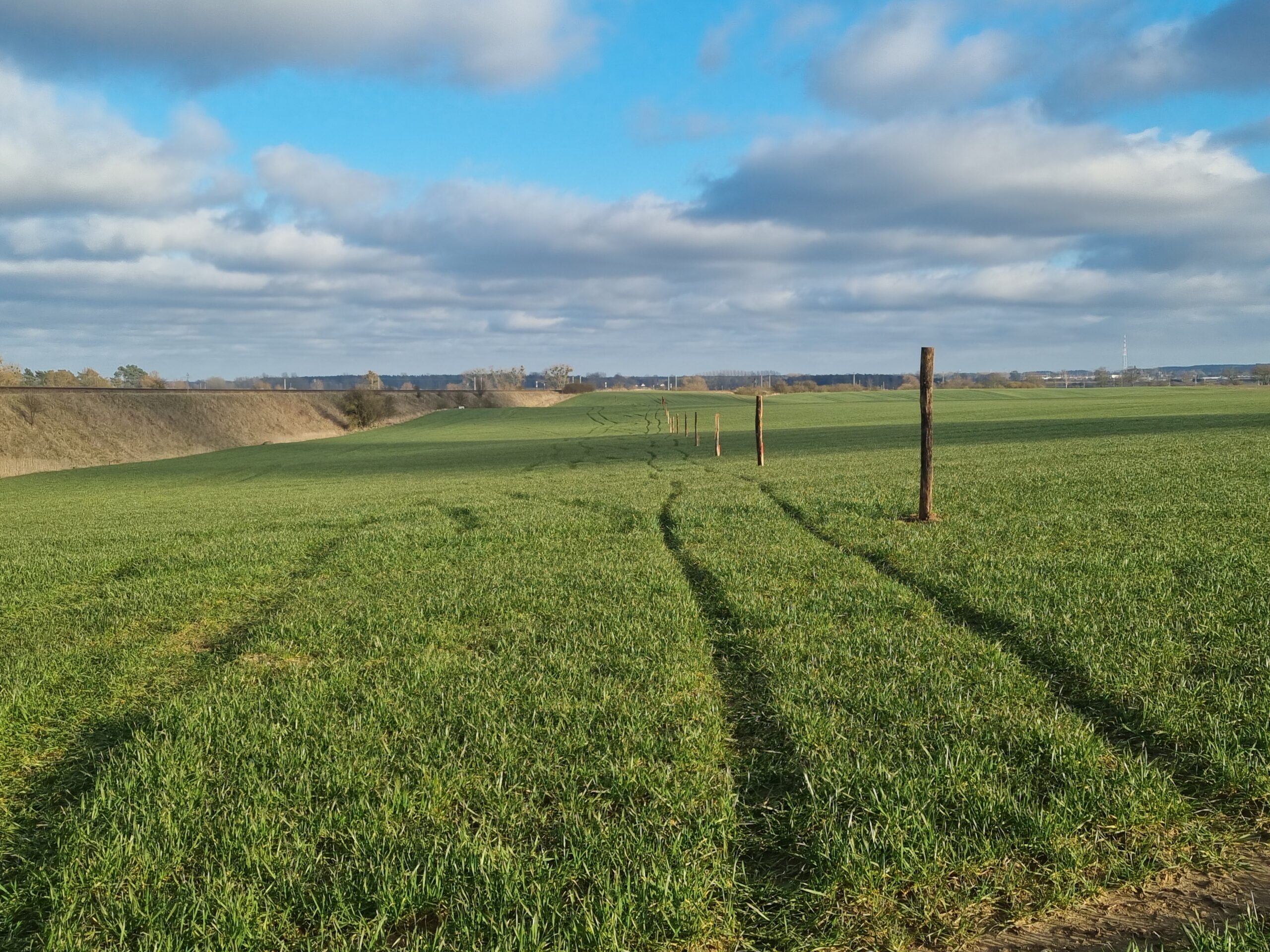 Dort wurde ein Ersatzbruthabitat für 3-4 Brutpaare der Feldlerche auf 2 ha zuvor ungeeigneter Fläche (bisher intensiv genutztem Acker) durch Anlage einer Extensiven Mähwiese geschaffen. Die Maßnahme beinhaltet neben der Entwicklungspflege auch die 25-jährige Pflege des Magergrünlands sowie ein regelmäßiges Monitoring.