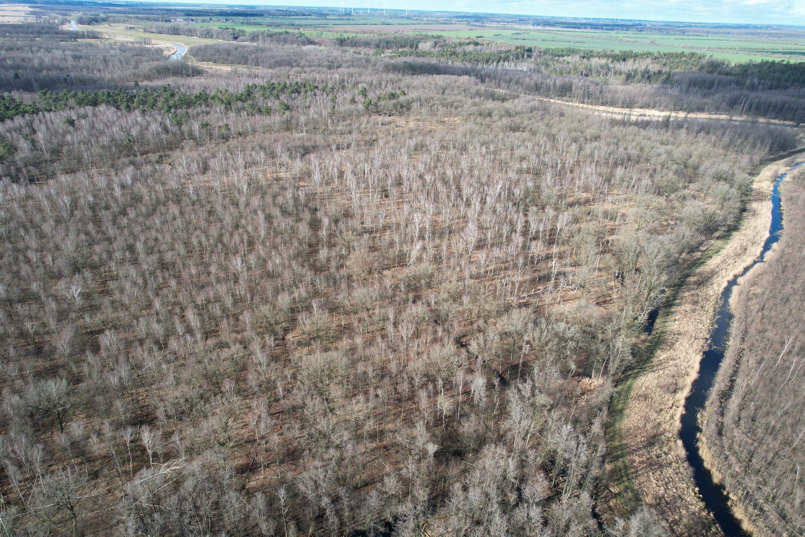 Ziel dieser Ökokontomaßnahme ist es diesen besonderen und wertvollen Waldbestand dauerhaft und unumkehrbar zu sichern und zu schützen. So kann das Totholz durch Hochwasser, Stürme und Biberfraß zunehmen und so die natürliche Verjüngung von Feuchtwaldarten wie Erle, Esche und Moorbirke fördern und zur weiteren Ausprägung von Bulten und Schlenken führen.
