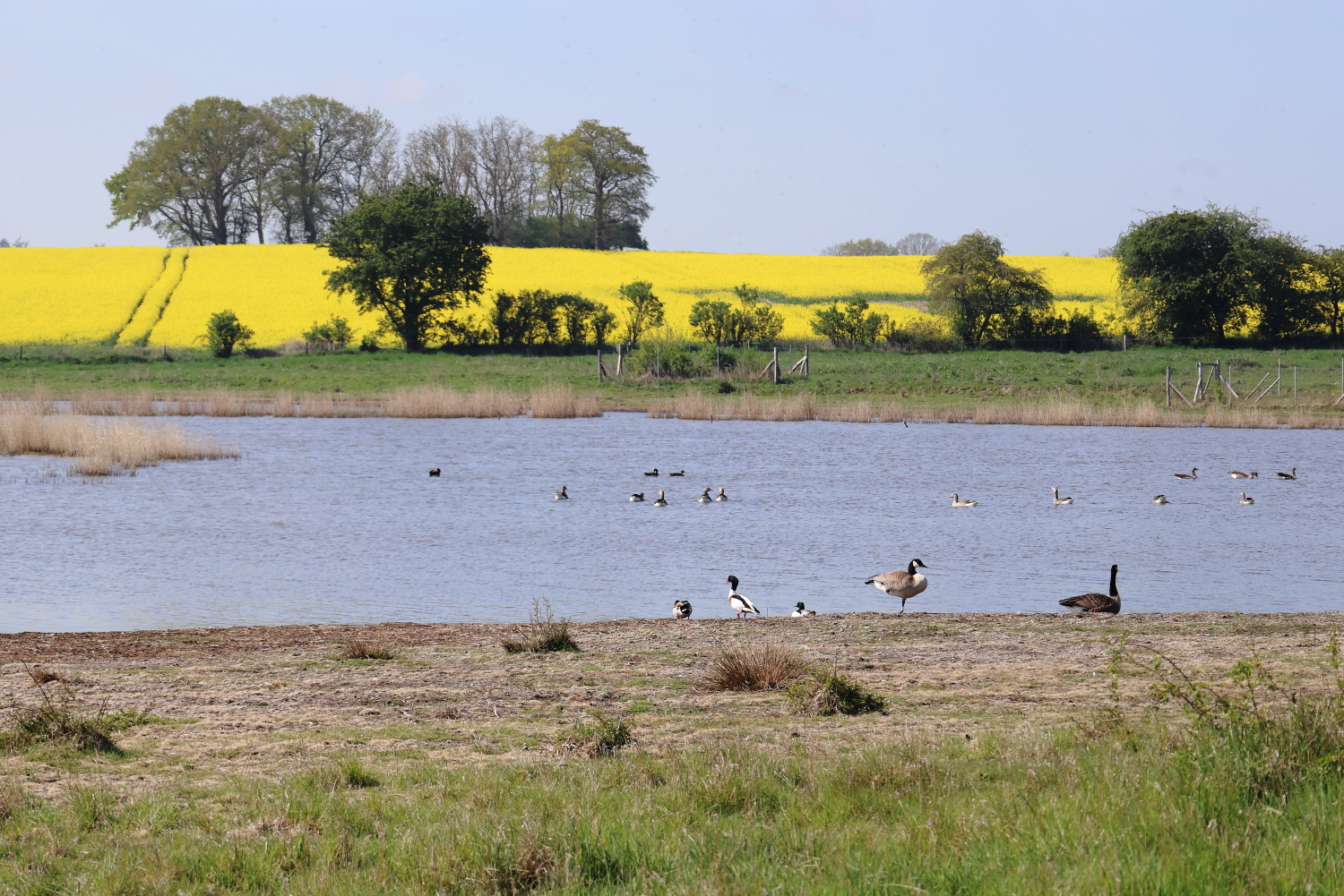 Kiebitz, Austernfischer, Säbelschnäbler, Sandregenpfeifer sind seither regelmäßige Brutvögel in dem Gebiet. Die randlich gepflanzten Hecken sichern Lebensraum für Sperbergrasmücke, Neuntöter und Co. Im Frühjahr und Herbst wird das Gebiet von zahlreichen weiteren Zugvögeln als Nahrungs- und Rastgebiet genutzt.