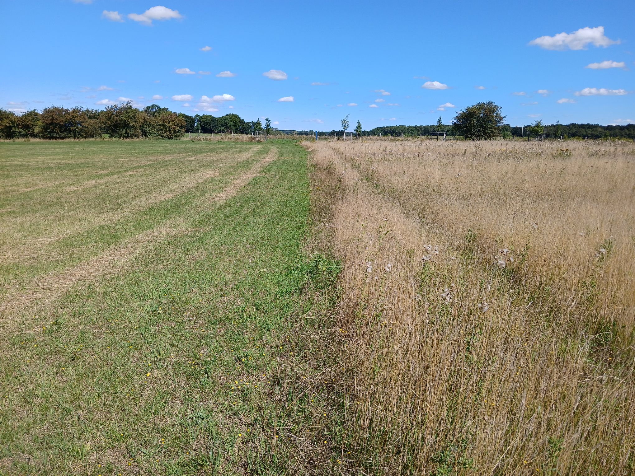 Schonstreifen, die temporären wilder Bänder der Wiese helfen bei einer frühen Mahd z.B. Gelege und Jungvögel der Bodenbrüter zu schützen, Nahrungspflanzen für Schmetterlinge zu erhalten. Schonstreifen bei späten Mahdterminen helfen zum Beispiel dabei, dass sich Blütenpflanzen aussamen können, die dazu im intensiv genutzten Wirtschaftsgrünland keine Chance haben.